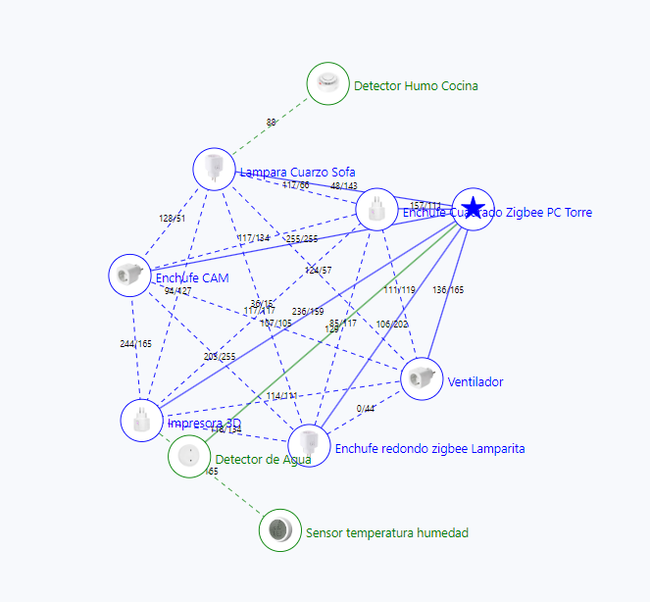 Me llama mucho la atención el gráfico de la malla que hace la red Zigbee.