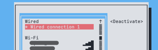 Si vamos a hacer uso de wifi, porque la impresora no tiene cerca una toma de cable ethernet, podemos configurarlo con el comando nmtui-connect