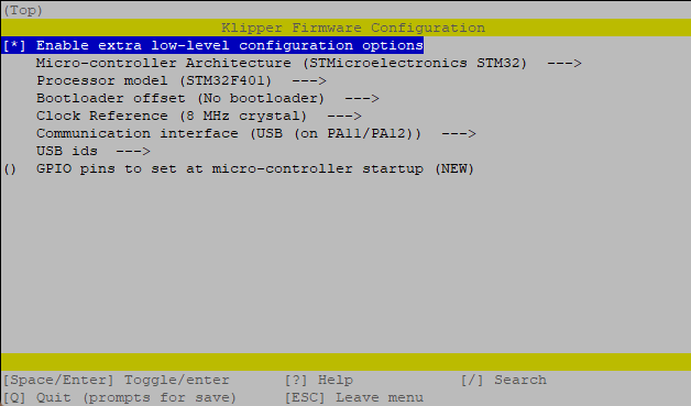 Si te pasa como a mi que no se flashea, la solución por la que opté fue coger el archivo klipper.bin que se ha generado. Pasadlo a un ordenador donde tengamos instalado el STM32 programmer y quemarlo en la placa (el proceso es como actualizar el firmware que vimos en Marlín).