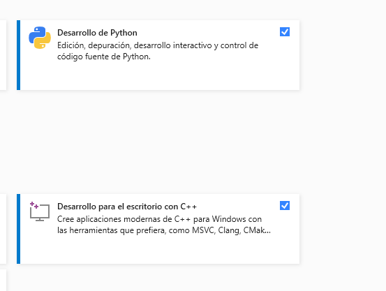 Ademas de usar el visual studio code necesitaremos instalar el visual studio comunity edition para tener los compiladores necesarios. Yo he seleccionado lo siguiente: