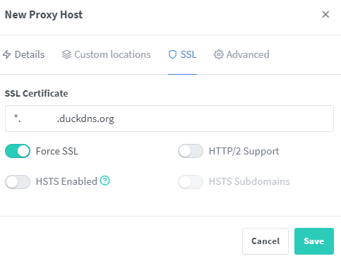 Configuración SSL en NPM con Duckdns