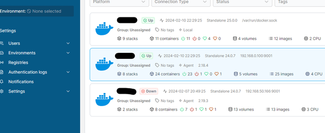 También es muy interesante el uso de agentes en Portainer. Ahora mismo acabamos de instalar un server Portainer y desde este podemos controlar otros equipos sin tener que instalar todo, solo con un agente. Una captura de como controlo mis 3 servidores.