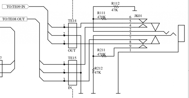 El cable que hemos cortado que sale del conector TE15, tendrá 3 puntas (L, R, GND). Una irá conectada a tierra, la del mallado. Las otras dos puntas, le añadiremos una resistencia de 10k y los conectaremos a donde indica el esquema.