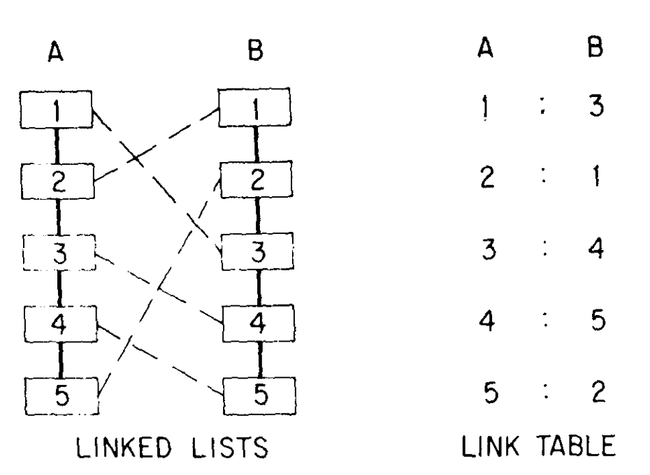 [Source: AUG. 24/11:00-12:30/GOLD ROOM 84 • ACM 20th National Conference/1965 SESSION 4: Complex Information Processing T. H. Nelson Vassar College, Poughkeepsie, N.Y. ] THE KINDS OF FILE structures required if we are to use the computer for personal files and as an adjunct to creativity are wholly different in character from those customary in business and scientific data processing. They need to provide the capacity for intricate and idiosyncratic arrangements, total modifiability, undecided alternatives, and thorough internal documentation. The original idea was to make a file for writers and scientists, much like the personal side of Bush's Memex, that would do the things such people need with the richness they would want. But there are so many possible specific functions that the mind reels. These uses and considerations become so complex that the only answer is a simple and generalized building-block structure, user-oriented and wholly general-purpose. The resulting file structure is explained and examples of its use are given. It bears generic similarities to list-processing systems but is slower and bigger. It employs zippered lists plus certain facilities for modification and spin-off of variations. This is technically accomplished by index manipulation and text patching, but to the user it acts like a multifarious, polymorphic, many-dimensional, infinite blackboard. The ramifications of this approach extend well beyond its original concerns, into such places as information retrieval and library science, motion pictures and the programming craft; for it is almost everywhere necessary to deal with deep structural changes in the arrangements of ideas and things. I want to explain how some ideas developed and what they are. The original problem was to specify a computer system for personal information retrieval and documentation, able to do some rather complicated things in clear and simple ways. The investigation gathered generality, however, and has eventuated in a number of ideas. These are an information structure, a file structure, and a file language, each progressively more complicated. The information structure I call zippered lists; the file structure is the ELF, or ]Evolutionary Lis't File; and the file language (proposed) is called PRIDE. In this paper I will explain the original problem. Then I will explain why the problem is not simple, and why the solution (a file structure) must yet be very simple. The file structure suggested here is the Evolutionary List File, to be built of zippered lists. A number of uses will be suggested for such a file, to show the breadth of its potential usefulness. Finally, I want to explain the philosophical implications of this approach for information retrieval and data structure in a changing world. This work was begun in 1960 - without any assistance. Its purpose was to create techniques for handling personal file systems and manuscripts in progress. These two purposes are closely related and not sharply distinct. Many writers and research professionals have files or collections of notes which are tied to manuscripts in progress. Indeed, often personal files shade into manuscripts, and the assembly of textual notes becomes the writing of text without a sharp break. I knew from my own experiment what can be done for these purposes with card file, notebook, index tabs, edge-punching, file folders, scissors and paste, graphic boards, index-strip frames, Xerox machine and the roll-top desk. My intent was not merely to computerize these tasks but to think out (and eventually program) the dream file: the file system that would have every feature a novelist or absent-minded professor could want, holding everything he wanted in just the complicated way he wanted it held, and handling notes and manuscripts in as subtle and complex ways as he wanted them handled. Only a few obstacles impede our using computer-based systems for these purposes. These have been high cost, little sense of need, and uncertainty about system design. The costs are now down considerably. A small computer with mass memory and video-type display now costs $37,000; amortized over time this would cost less than a secretary, and several people could use it around the clock. A larger installation servicing an editorial office or a newspaper morgue, or a dozen scientists or scholars, could cost proportionately less and give more time to each user. The second obstacle, sense of need, Is a matter of fashion. Despite changing economies, it is fashionably believed that computers are possessed only by huge organizations to be used only for vast corporate tasks or intricate scientific calculations. As long as people think that, machines will be brutes and not friends, bureaucrats and not helpmates. But since (as I will indicate) computers could do the dirty work of personal file and text handling, and do it with richness and subtlety beyond anything we know, there ought to be a sense of need. Unfortunately, there are no ascertainable statistics on the amount of time we waste fussing among papers and mislaying things. Surely half the time spent in writing is spent physically rearranging words and paper and trying to find things already written; if 95% of this time could be saved, it would only take half as long to write something. The third obstacle, design, is the only substantive one, the one to which this paper speaks. Let me speak first of the automatic personal filing system. This idea is by no means new. To go back only as far as 1945, Vannevar Bush, in his famous article "As We May Think "1 , described a system of this type. Bush's paper is better remembered for its predictions in the field of information retrieval, as he foresaw the spread and power of automatic document handling and the many new indexing techniques it would necessitate. But note his predictions for personal filing: "Consider a future device for individual use, which is a sort of mechanized private file and
