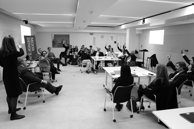 En cada sesión reunimos a dos ponentes de reconocido prestigio y a esta comunidad de deliberantes para trabajar, a través del método Do the Right Think, cuestiones críticas para el buen juicio en la toma de decisiones y la gobernanza.