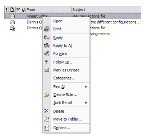 Figure 3. Actions for a contact name in a list view (Microsoft Outlook XP)