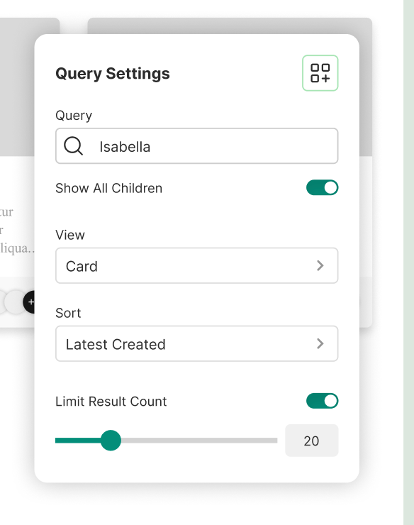 The Feed builder can be shared with the Query Block Settings and Content Embed Settings. (I even wonder if it could be the same Query Language as the Search Page.)