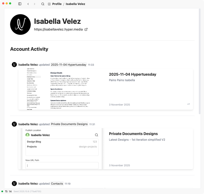 Profile Feed - What has this person done, across all known sites?