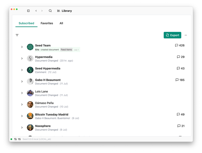 Action One: Gabo sees 426 unreads and that Eric has created the document Feed Items