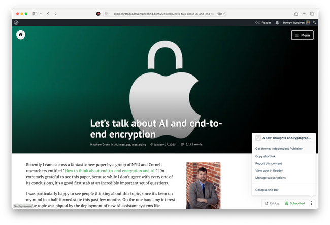 And if you log in to your wordpress.com you get some nice features like the list of notifications, a better "logged in" state, consolidate all your subscriptions in their "Reader" web app, comments, and so on.