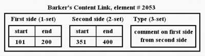 Suppose that in the text of Barker's document B, he has made a comment on Adam's document A. The text of the comment consists of characters 351 to 400; they comment on characters 101 to 200 in the middle part of A. While Barker's comment already resides in his text in written form, it gives no direct access to the material being commented on. So let us say that as the author, Barker chooses to make this textual relationship explicit, representing it as a comment link between those two spans (presumably using some comfortable visual editor to select the spans and specify the link type).