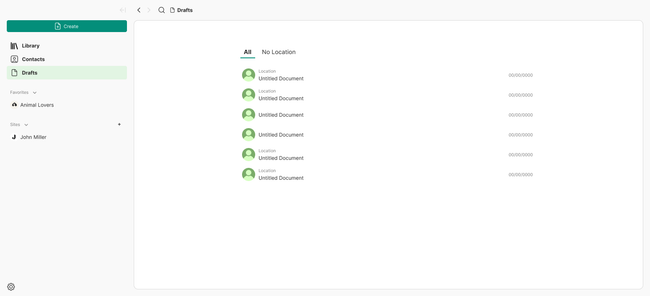 Drafts with no location created on the navigation side panel.