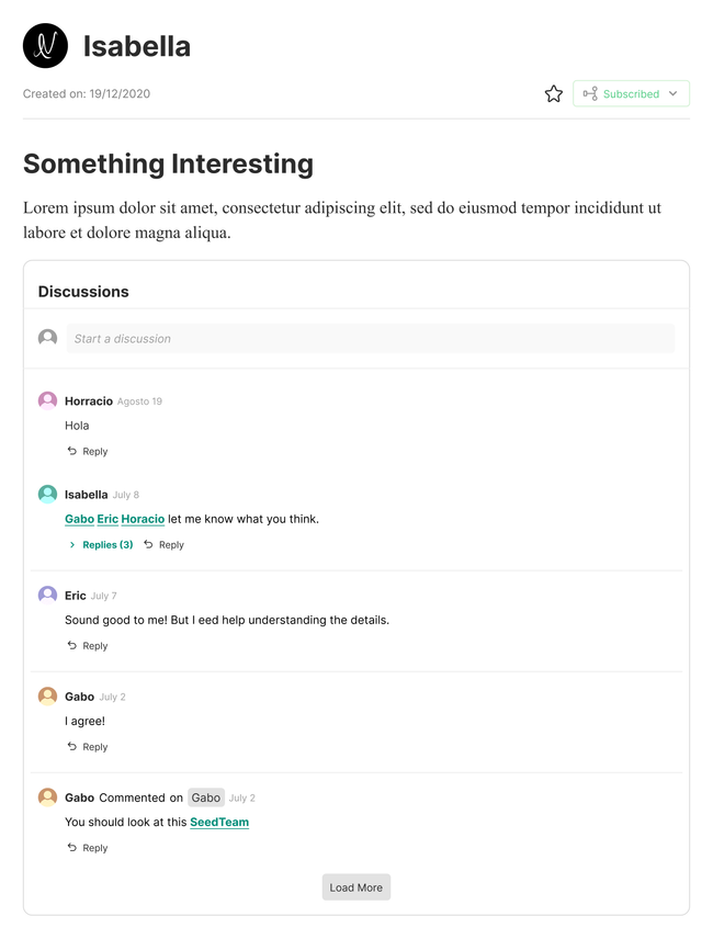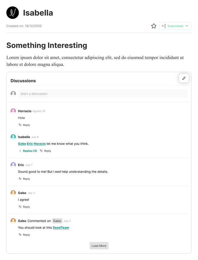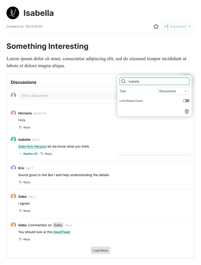 Adding a load button could help with document loading speed. At the top of the discussion block you would find the lates discussions created.