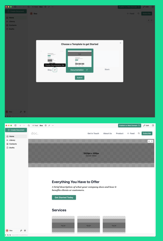 Start with a blank slate instead of template options, allowing users to explore the app’s core features without distraction while guiding them on how to begin creating content.