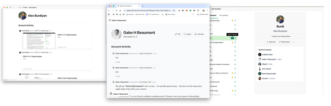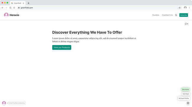 From here the user can easily navigate to the owner of the site's profile or feed, liberating the space form the the site navigation.