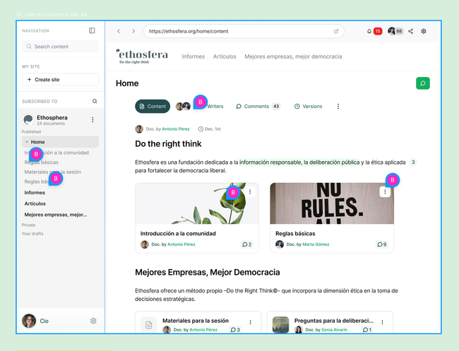 document show the content in the main section