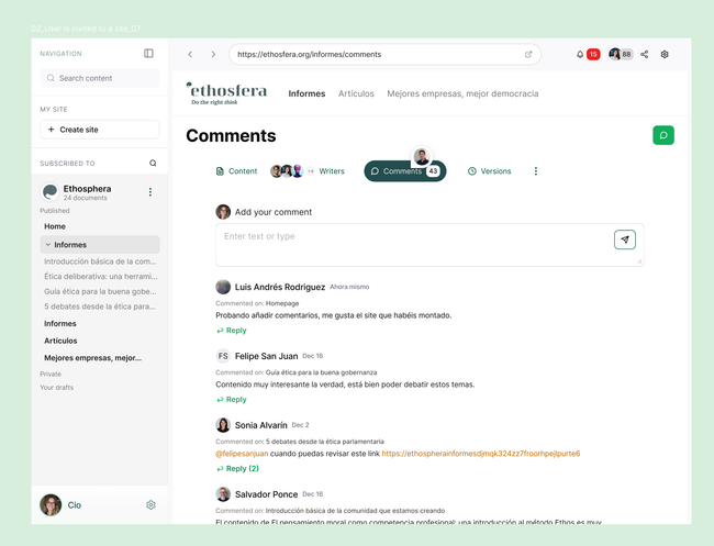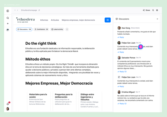 Open a comment in the main section