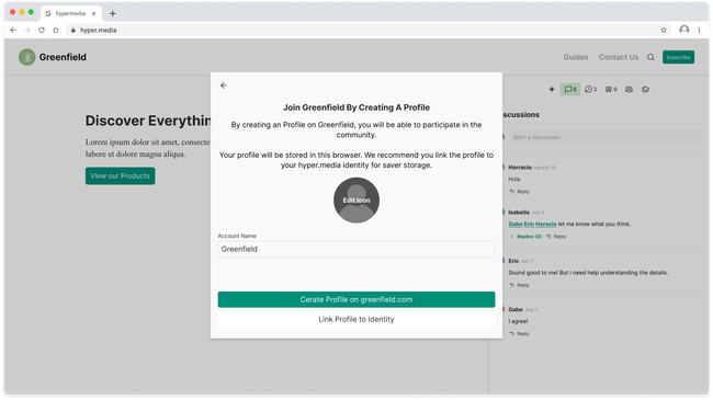To create an profile form scratch on the web it can be done in one of two ways though starting a comment or clicking the join button at the bottom. Both of this options will display a pop up inciting users to create a new profile on that domain.
