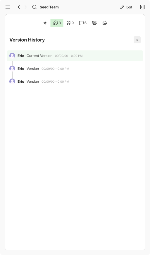 The items in the version history don't have constancy with the items in the all activity panel. The design should be unified so the element have consistency.