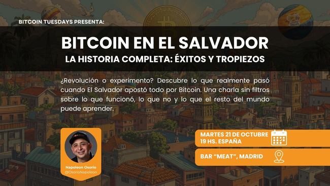 Este martes tendremos una sesión especial con Napoleón Osorio para escuchar una experiencia única: la historia real detrás de la primera adopción nacional de Bitcoin desde la perspectiva de sus ciudadanos. Analizaremos los aciertos, los tropiezos y las lecciones que aún resuenan en la comunidad global.