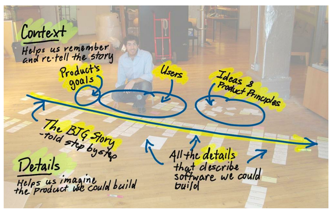 A tool to tell stories through collaboration with words and pictures as a mechanism that builds shared understanding. Stories are the discussions about solving problems to people that lead to agreements on what to build.